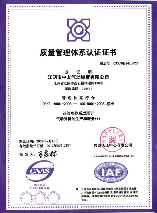 江陰市中友氣動彈簧有限公司