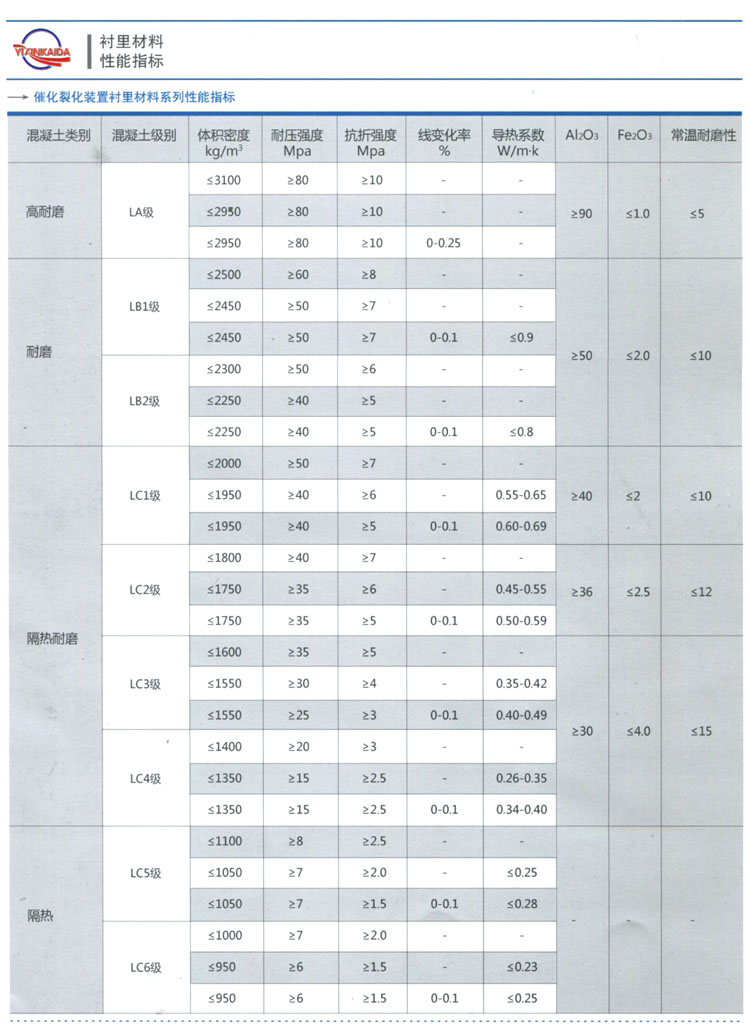 催化裂化裝置澆注料產(chǎn)品系列