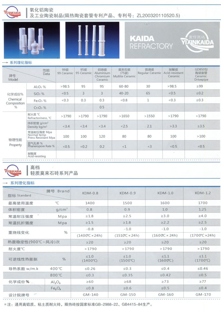 輕質(zhì)莫來石磚、氧化鋁陶瓷