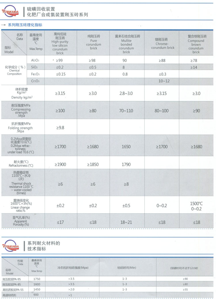 硫磺回收合成氨裝置剛玉磚系列