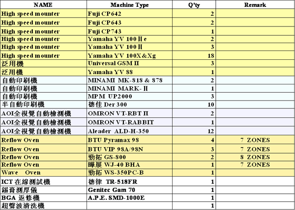 無錫百晟科技有限公司為臺資企業(yè),成立於2001年 12月14日-主要經(jīng)營項目SMT 及DIP 全製程加工生產(chǎn), PCB. FPC. RF各式基板貼片加工,以嚴(yán)格的標(biāo)準(zhǔn),優(yōu)良的製程能力,要求達(dá)到最佳及無客訴的品質(zhì)為目標(biāo);本公司目前有10條SMT生產(chǎn)線,日產(chǎn)能:750萬chip點(diǎn) ,2004年經(jīng)客戶日本原廠Lead Free認(rèn)證合格並開始量產(chǎn)Lead Free產(chǎn)品。製程實(shí)際生產(chǎn)經(jīng)驗(yàn) 3年以上無鉛製程經(jīng)驗(yàn).最小蕊片: 0201 Chip 最小間距: 0.3 mm( IC ) : 0.35 mm(Connect) 最大PCB: 255 mm X 360 mm PCB / FPC / RF 貼片生產(chǎn)經(jīng)驗(yàn)。