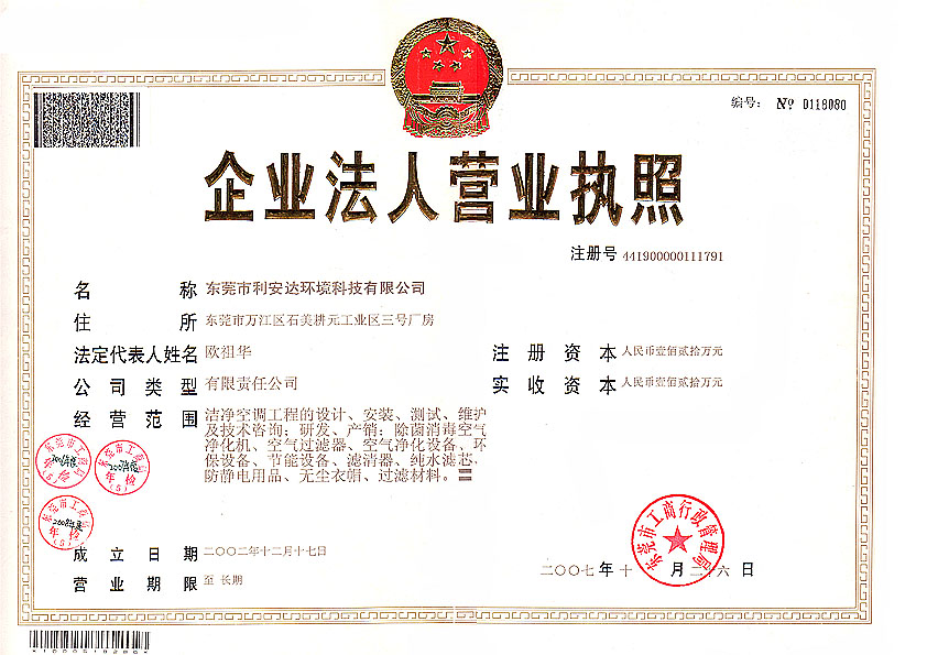 公司位于東莞市萬江區(qū)石美甘元工業(yè)區(qū),占地面積11000余平方,與日本、韓國的同行積極合作,引進(jìn)了其先進(jìn)的環(huán)保理念、潔凈技術(shù)和管理模式。經(jīng)過不斷學(xué)習(xí)和創(chuàng)新,擁有自主品牌“利安達(dá):牌的三大系列空氣凈化、消毒設(shè)備及專利產(chǎn)品:1、空氣凈化除菌消毒機(jī)及裝置系列;2、工業(yè)用空氣凈化設(shè)備系列;3、空氣過濾器系列;產(chǎn)品廣泛應(yīng)用于醫(yī)療、衛(wèi)生的環(huán)境消毒;會(huì)議室、活動(dòng)中心、行政辦公大樓、銀行、證券、通訊、酒店、茶樓、家庭等人居工作活動(dòng)公共場(chǎng)所的空氣凈化;電子、光電、光學(xué)、核電、塑膠成型、高端產(chǎn)品、食品飲料等行業(yè)的生產(chǎn)車間潔凈廠房。