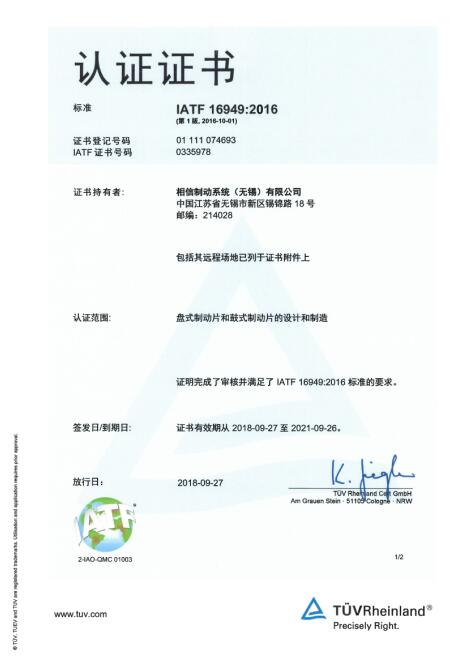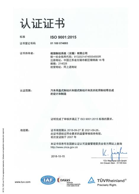 相信制動(dòng)系統(tǒng)(無錫)有限公司
