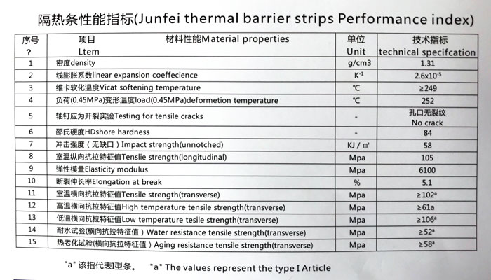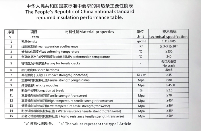 隔熱條性能表
