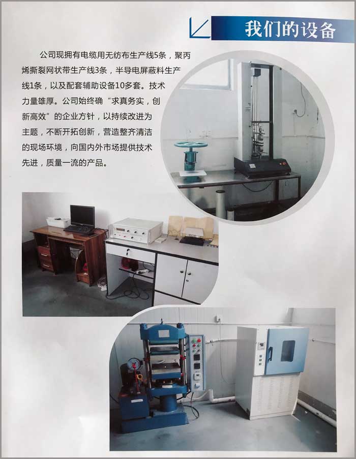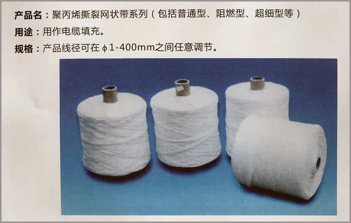公司現(xiàn)擁有電纜用無(wú)紡布生產(chǎn)線5條,聚丙烯撕裂網(wǎng)狀帶