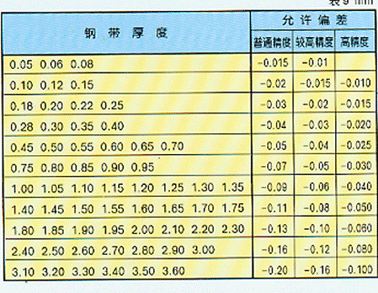 鋼帶厚度允許偏差符合表
