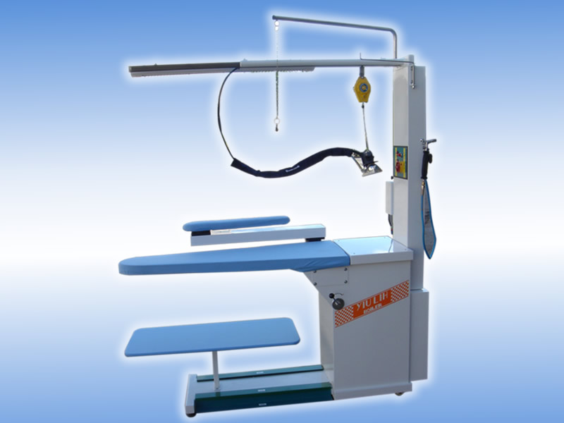 型號:YP-130AHB-T 名稱:多功能燙臺 特性: ●帶燙馬及電加熱,吹吸風兩用,帶照明系統(tǒng)。 ●配備進口電加熱熨斗、進口蒸汽噴槍。 技術(shù)參數(shù): 電源:220V/50HZ 功率:750w 外形尺寸:1700×600×1780 重量:90kg 外接設(shè)備:(注需買方另行購買) 蒸汽發(fā)生器:蒸汽壓力約5kg/cm2