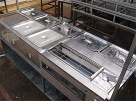 規(guī)格1700 800 800。 設備帶展示臺、推手和遮陽棚,臺面為不銹鋼制造,爐體為鐵板制造,燃料使用
