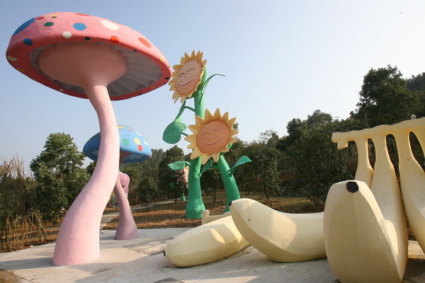 The legend goes that in remote antiquity the spirit of eel from Lake Tai brought calamities to the region and the people, and Samantabhadra Bodhi-sattva ordered the immortal white elephant with six curved ivory tusks to descend from heaven to wipe out the spirit of eel and do good for the people, and then turned it into a hill watching over the place. Hence the name White Elephant Bay or Bai Xiang Wan in Chinese. In the light of Buddhism the scenic splendors of Bai Xiang Wan possess Zen Buddhist connotations. In spring hundreds of aromatic flowers fascinate the viewer. In summer cicadas chirp shrilly and happily by the stream. In autumn the pure expanse of the lake reflects the bright moon at night. In winder serenity reigns everywhere in the snow-capped forest.Passing through the Gate of Good Luck, one can experience flourishing agricultural civilization, sit quietly by the Quietist Lake,walk hand in hand with the beloved through the Love Dale, play games and gain excitements amid twittering birds and fragrant flowers through the Challenging Way, the Elevated Passage and The Fancy House, and merrily watch interesting performances by star animals headed by the elephant.