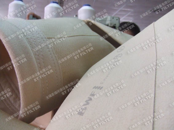 濾袋中縫采用高溫焊接,以降低粉塵排放濃度。袋口袋底采用耐強(qiáng)酸的PTFE線縫制。袋底加固100mm,防止濾袋袋底非正常磨損。