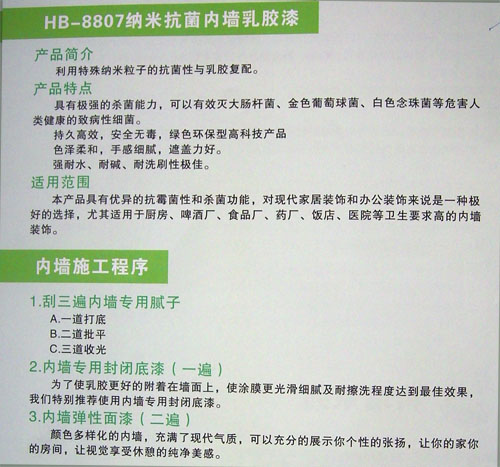 產(chǎn)品名稱:HB-8807 納米抗菌內(nèi)墻乳膠漆