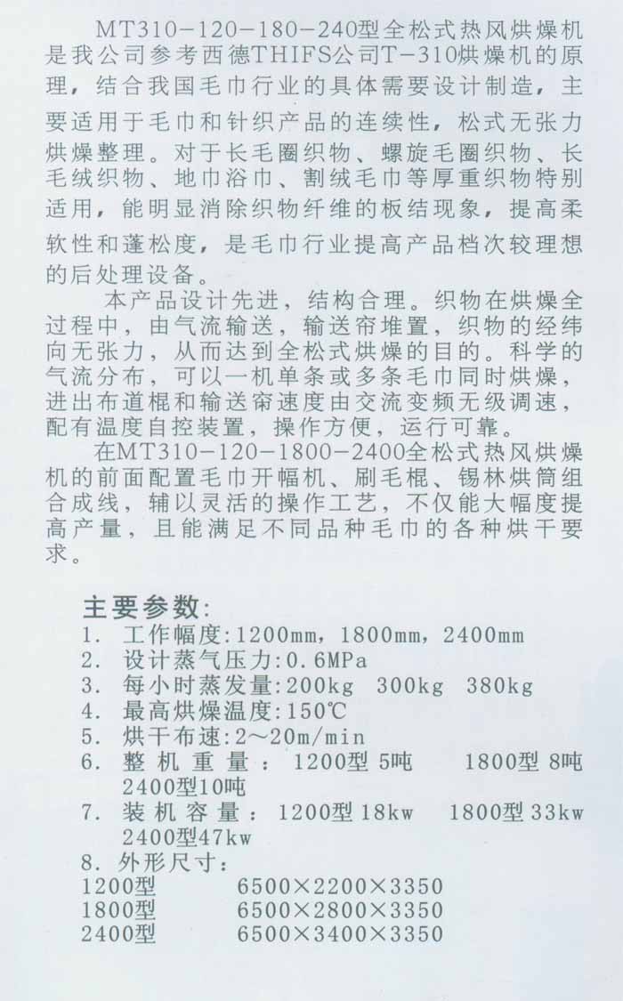 產(chǎn)品名稱:MT310-120-180-240型全松式熱風(fēng)烘燥機