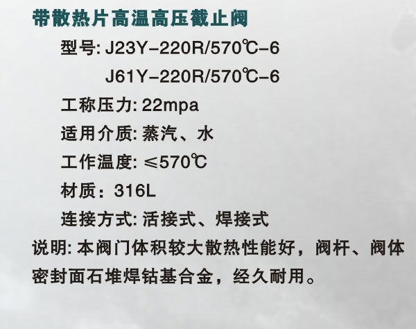 產(chǎn)品名稱:帶散熱片高溫高壓截止閥1