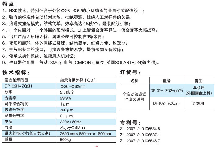 產(chǎn)品名稱:DP102H+ZQ2H全自動滾道式合套