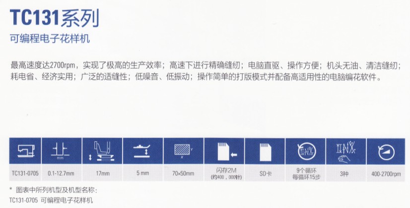 產(chǎn)品名稱(chēng):TC131系列可編程電子花樣機(jī)
