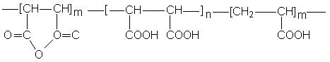 本品由馬來酸酐中加入少量丙烯酸共聚后經(jīng)水解制得,是一種低分子量多價(jià)螯合劑,其阻垢性能高于HPMA,耐高溫(300℃)。本品可與水中二價(jià)金屬離子螯合,特別是抑制硫酸鈣十分有效,故可用于冷凍鹽水中,能有效抑制硫酸鈣沉積。