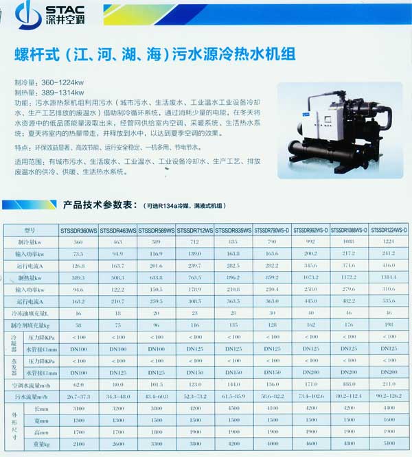 產品名稱:螺桿式(江、河、湖、海)污水源冷熱水機組