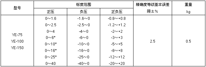 □主要技術(shù)指標(biāo) ●標(biāo)度范圍、精確度等級及重量