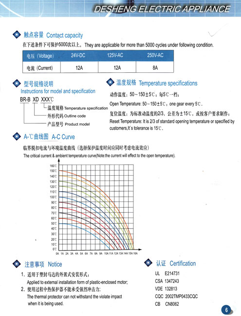產品名稱:BR-B系列熱保護器
