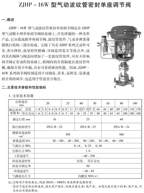 產品名稱:ZJHP-16W型氣動波紋管密封單座調節(jié)閥
