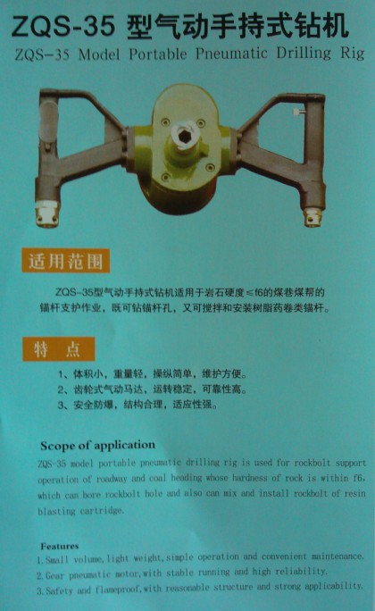 產(chǎn)品名稱:ZQS-35型氣動(dòng)手持式鉆機(jī)
