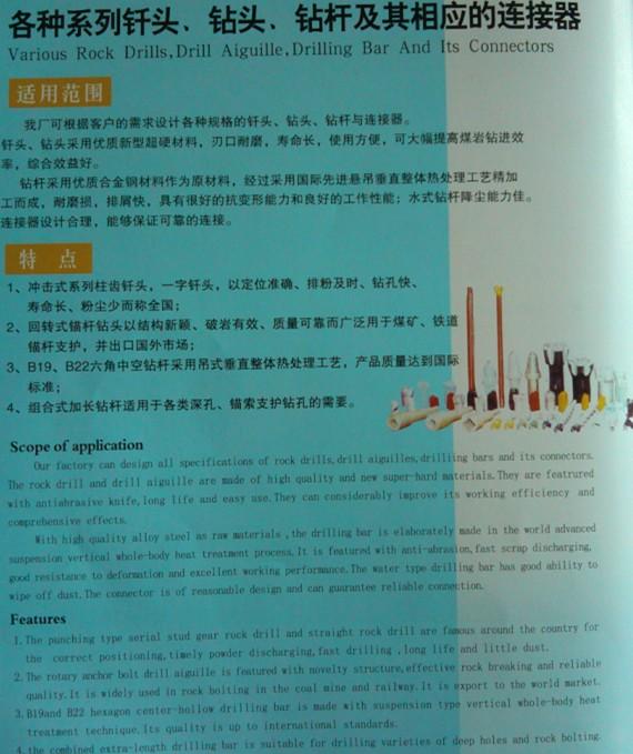 產(chǎn)品名稱:各種系列釬頭、鉆頭、鉆桿及其相應(yīng)的連接器
