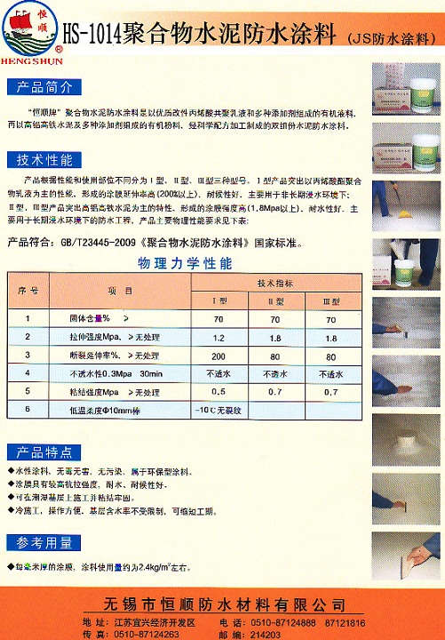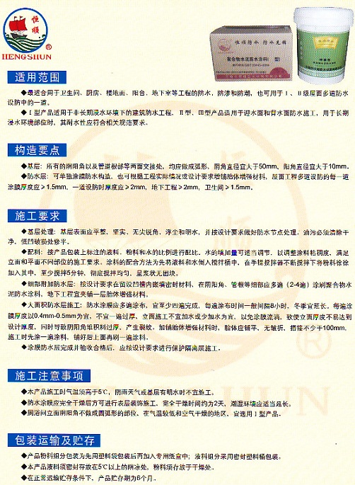 產(chǎn)品名稱:HS-1014聚合物水泥防水涂料