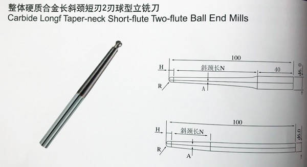 整體硬質(zhì)合金長斜頸短刃2刃球型立銑刀
