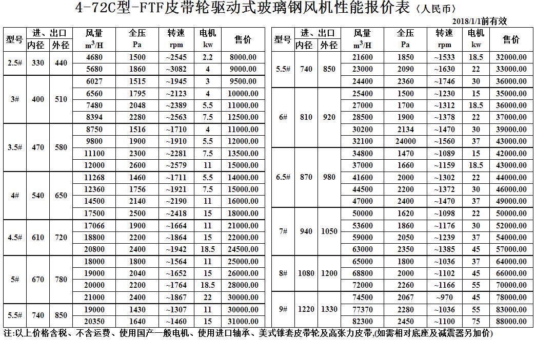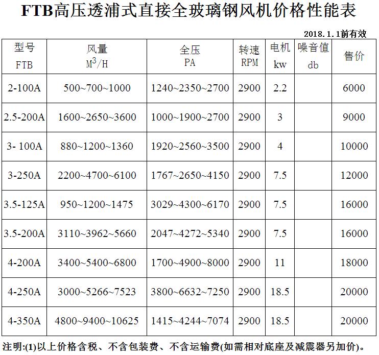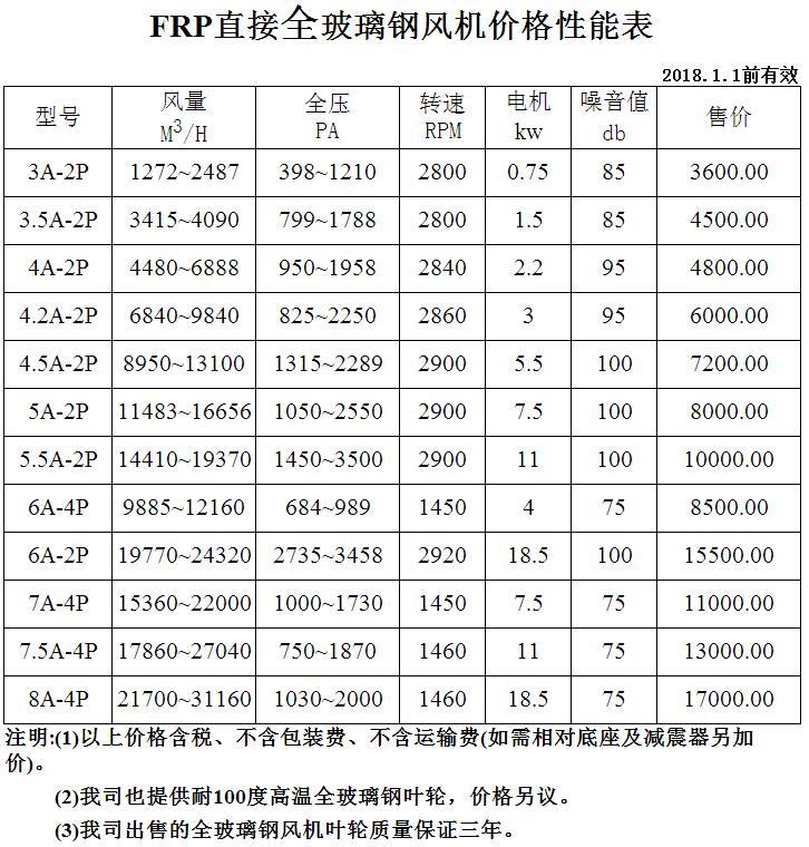 FRP直接全玻璃鋼風機價格性能表...