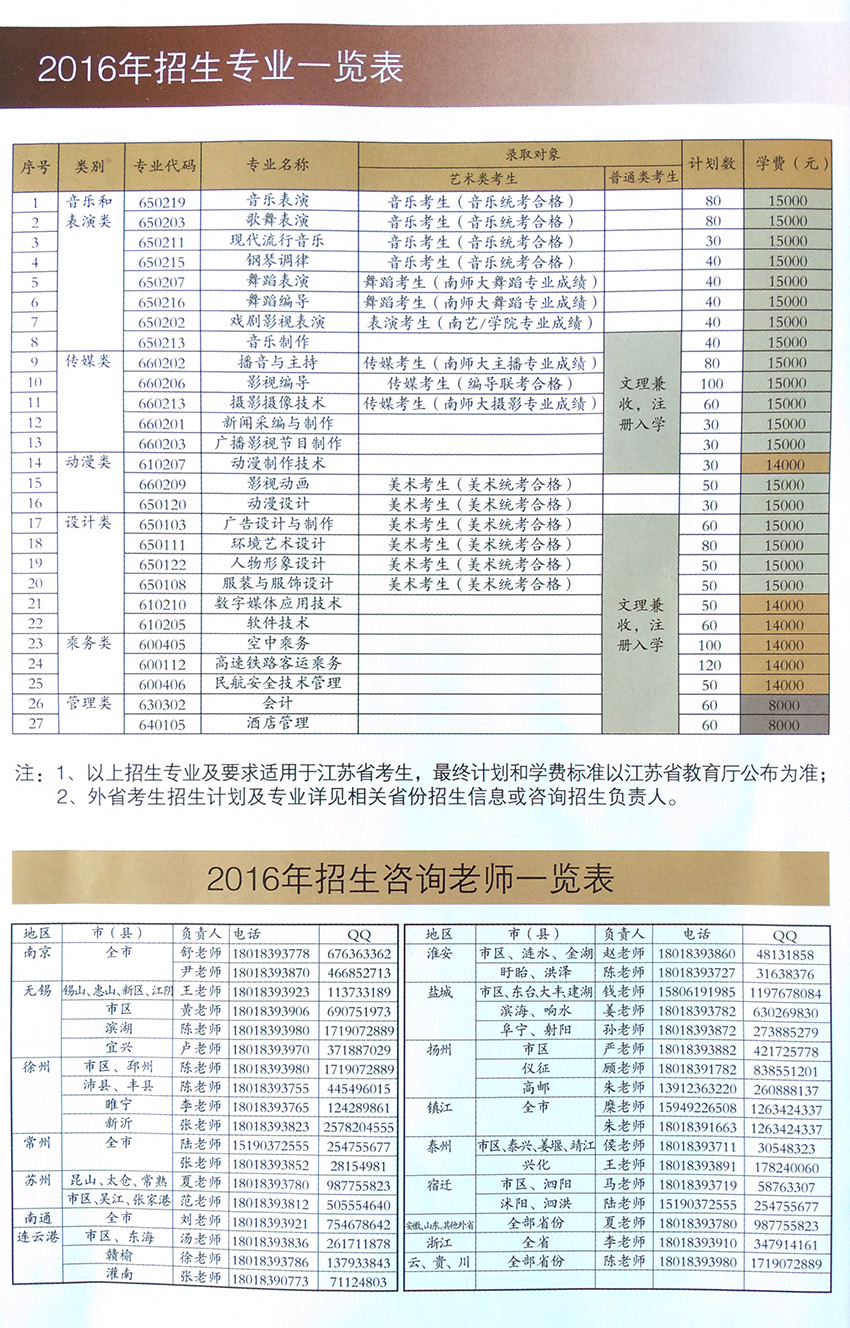 2016年招生專業(yè)一覽表...